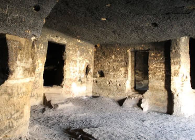 لا توجد تواريخ دقيقة لبناء المغارة، إلا أن بعض المؤرخين أطلقوا عليها تسمية "قصر البنّائين"، نسبة إلى البنّائين الرومان الذين يُعتقد أنهم استخدموا الموقع أثناء أعمال شق قنوات جر المياه من نهر العاصي إلى مدينة تدمر. ويشير هذا الاحتمال إلى أن المغارة قد استُخدمت في البداية كمأوى أو مركز إقامة للعمال والمهندسين الرومان.المغارة محفورة بشكل طبيعي في الصخر الكلسي، إلا أن الإنسان أضاف إليها عناصر معمارية لاحقاً، أبرزها الواجهة الحجرية المبنية من حجارة صغيرة مقصوبة، إضافة إلى نظام القناطر الحجرية في المدخل. كما تتميز بطابع دفاعي واضح، إذ تحتوي على نوافذ ضيقة تُعرف بكوّات الرمي، تتسع من الداخل وتضيق من الخارج، وهي تقنية دفاعية كانت تُستخدم لحماية المكان من الهجمات.